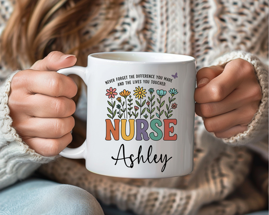 Personalized Nurse Appreciation Mug – “Never Forget the Difference” Floral Gift for Nurses