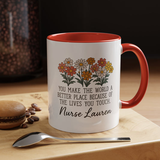 Personalized Nurse Appreciation Mug – “You Make the World Better” Floral Gift for Nurse Lauren – Thank You Gift for Healthcare Workers