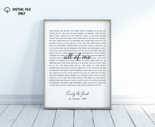 Personalized Song Lyrics Print - Custom Wall Art Frame- Wedding, Anniversary Gifts - For Her, Him, Couples - First Dance - Our Song- digital