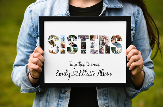 Personalized SISTERS Word Photo Collage Gift - Custom Keepsake with Shared Memories
