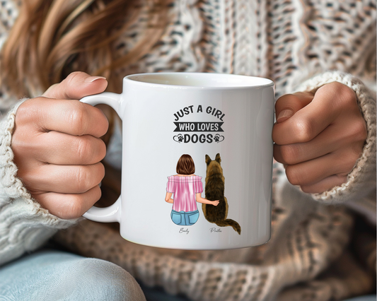 Personalized Dog Lover Mug – “Just a Girl Who Loves Dogs” – Custom Pet Portrait with Name