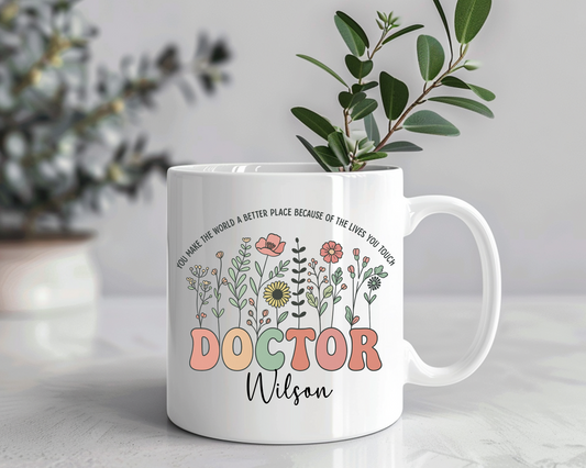 Personalized Doctor Appreciation Mug – Custom Floral Coffee Cup with Name, Gift for Female Doctors, Medical Professionals, or Graduation