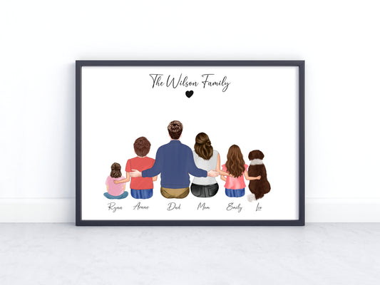 Personalized Family Portrait - Custom Digital Illustration, Family Name Wall Art, Custom Hair & Outfit Design
