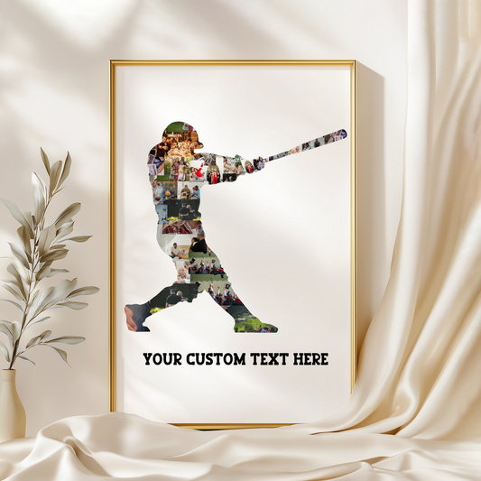 Personalized Baseball Player Photo Collage Poster – Custom Sports Silhouette Wall Art with Your Text