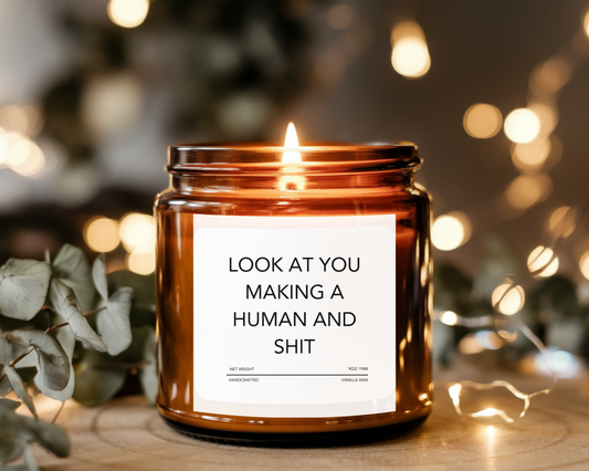 Funny Pregnancy Candle - "Look at You Making a Human and Sh*t", New Mom Gift, Baby Shower Gift, Pregnancy Announcement, Relaxing Soy Candle