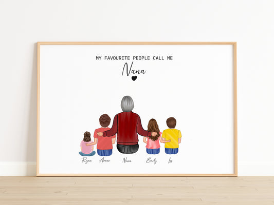 Personalized Nana Print - Custom Grandmother Gift, Family Portrait, Grandkids Gift, Mother's Day Wall Art